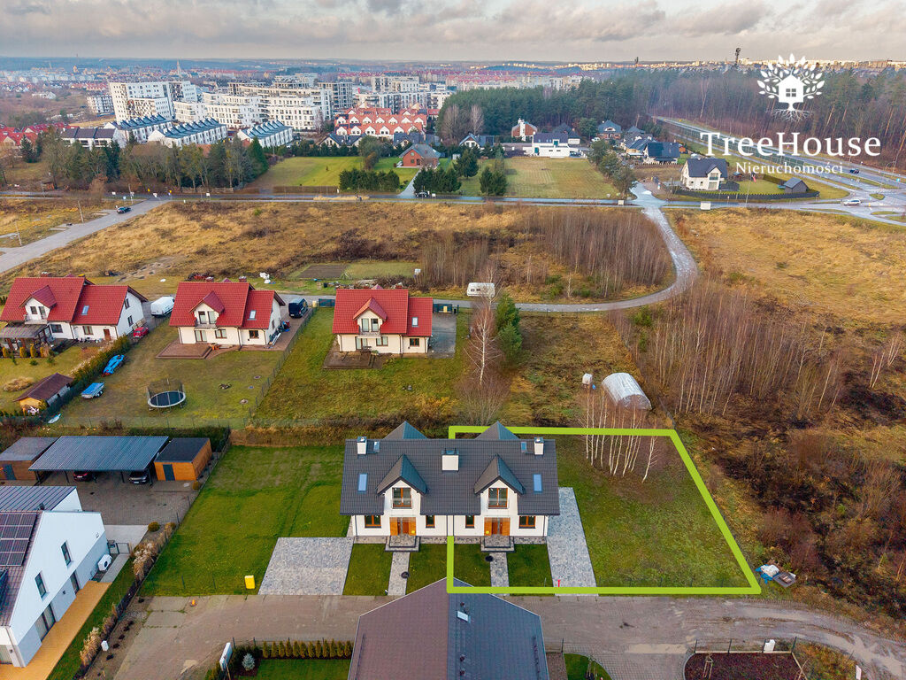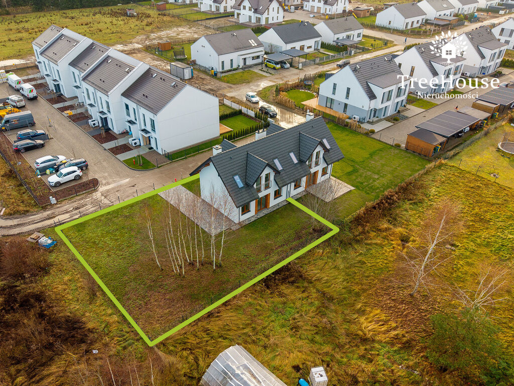 Powierzchnia działki wynosi około 585 m2. Działka z trzech stron